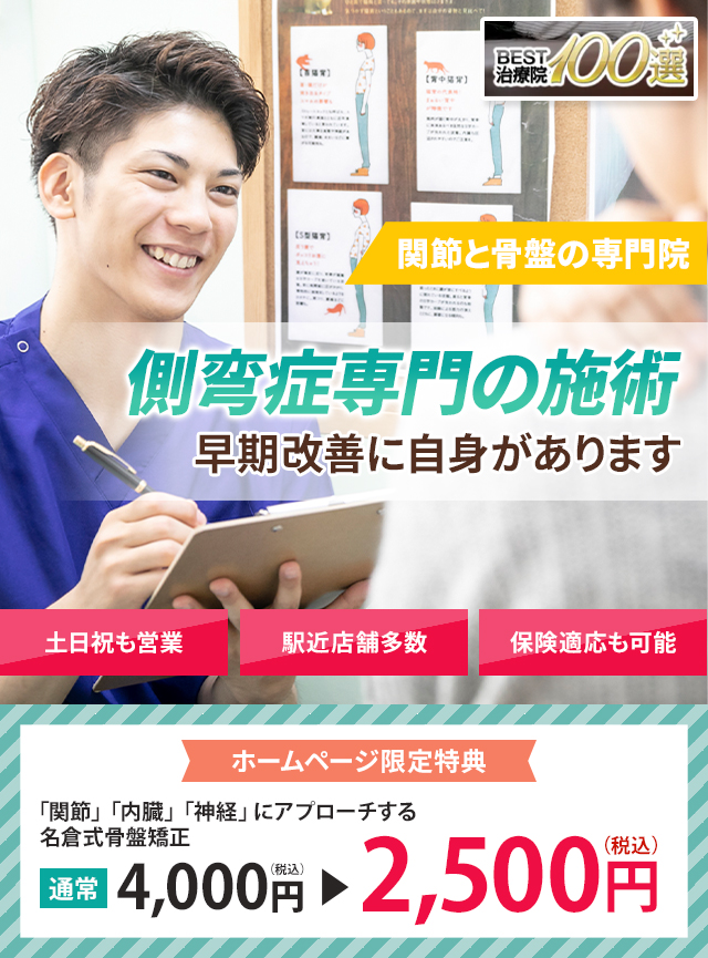 そのため、側弯症を改善・再発防止に導くためには、まずは「骨盤・背骨」にアプローチすることが大切です。
